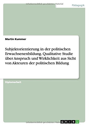 Download PDF Subjektorientierung in der politischen Erwachsenenbildung. Qualitative Studie über Anspruch und Wirklichkeit aus Sicht von Akteuren der politischen Bildung Online - From the worldwide bestselling team of ... Read online or download eBook PDF Subjektorientierung in der politischen Erwachsenenbildung. Qualitative Studie über Anspruch und Wirklichkeit aus Sicht von Akteuren der politischen Bildung Kindle in PDF, EPUB, MOBI, ...